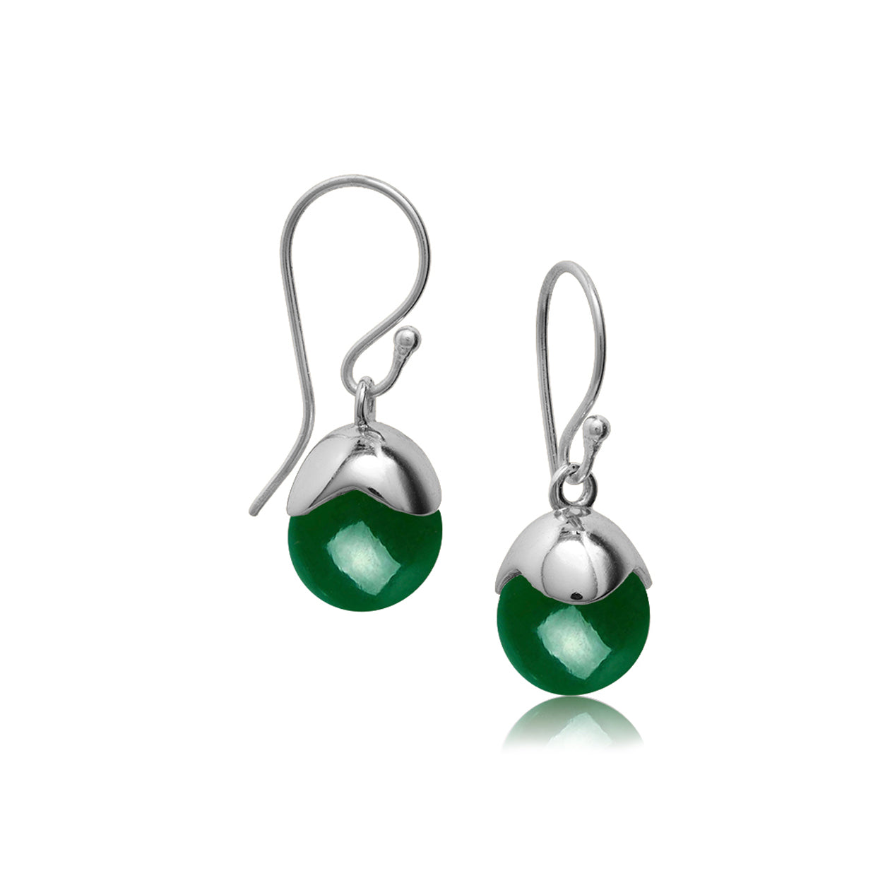 Glory örhängen i silver med grön onyx. Den gröna onyxen mäter 10 mm i diameter och har en fantastisk vacker färg. Vi har noggrant valt ut våra naturliga ädelstenar och smyckena tillverkas av våra skickliga guldsmeder.