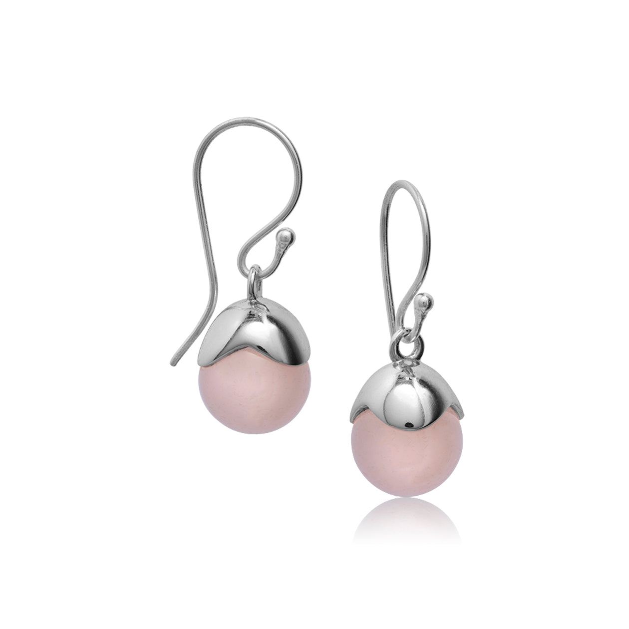 Glory örhängen i silver med rosa kalcedon. Den rosa chalcedonen mäter 10 mm i diameter och har en fantastisk vacker färg. Vi har noggrant valt ut våra naturliga ädelstenar och smyckena tillverkas av våra skickliga guldsmeder.