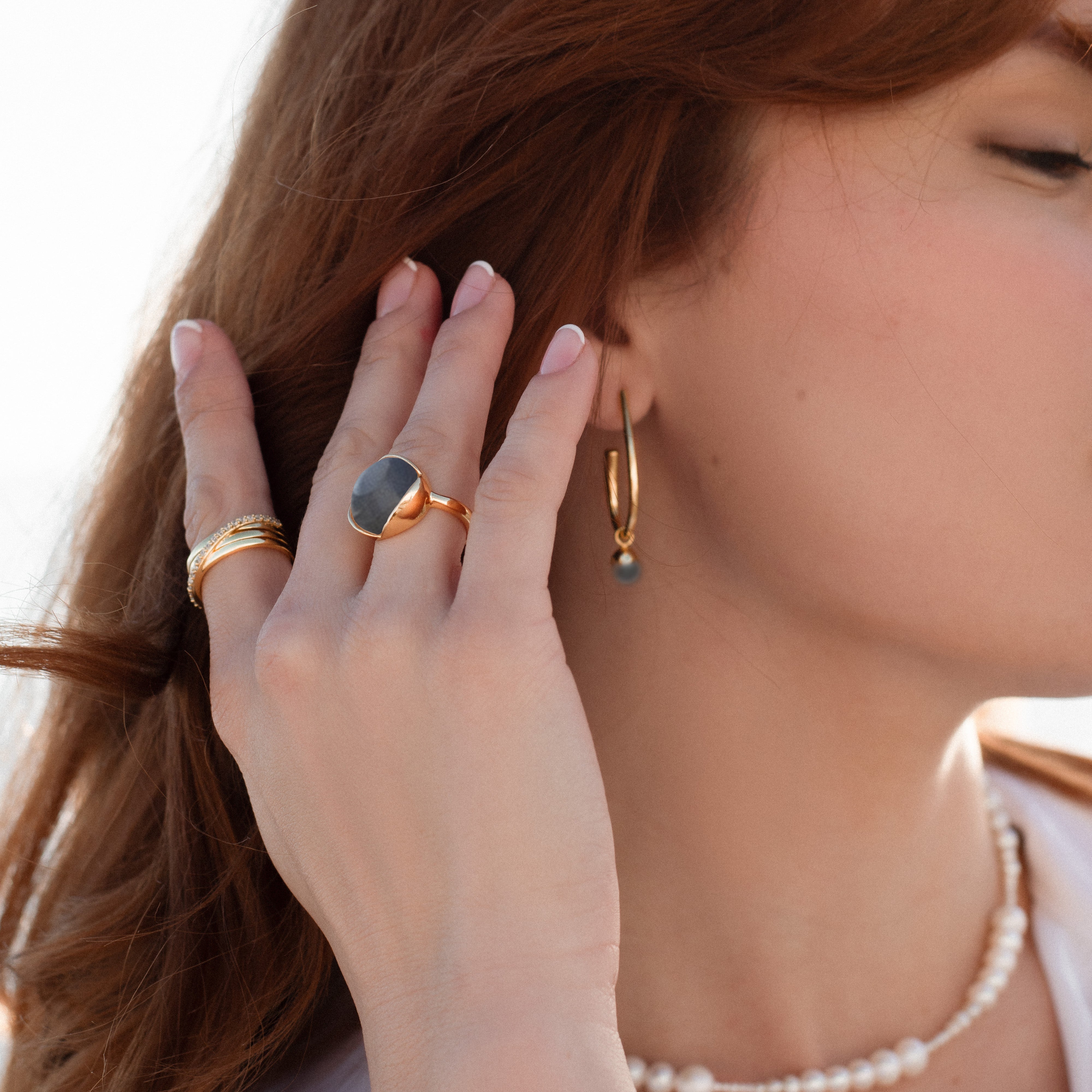 I glory-kollektionen använder vi många olika naturligt förekommande ädelstenar - inklusive månsten, opal, grön onyx, blå topas, sötvattenspärla, lapis lazuli, etc.