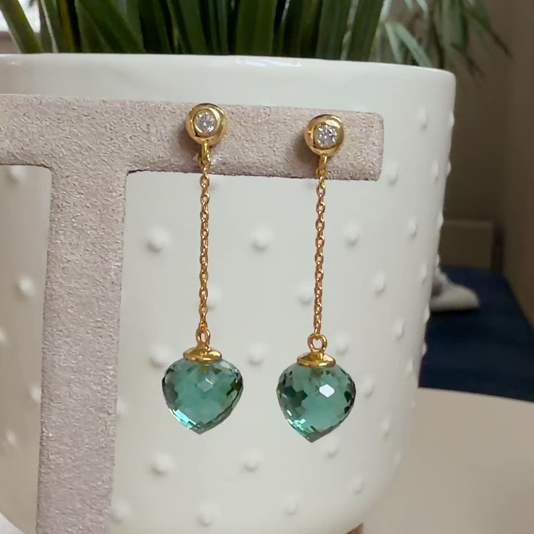Vi slipar alla stenar i vår egen verkstad, och smyckena har 18 karats guldplätering på 925 sterlingsilver.